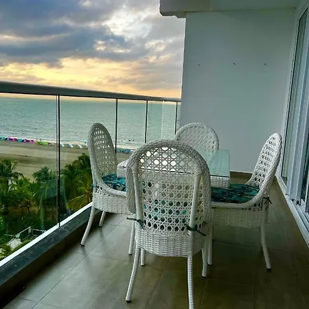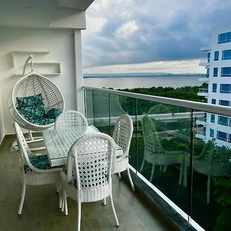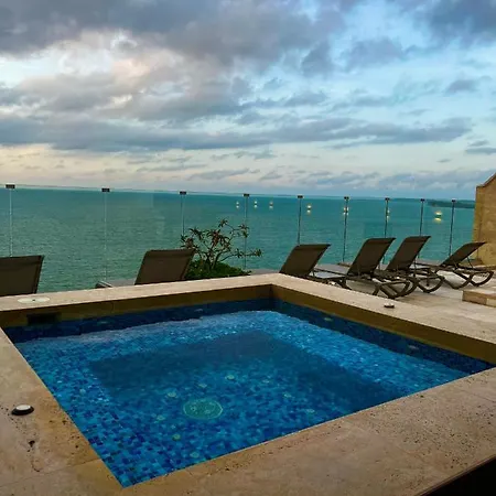Apartamento Hermoso Apartamento Con Vista Al Mar Y Salida Directa A La Playa Cartagena, situado a 7 km de la Galeria Cano, ofrece instalaciones de spa, incluyendo un jacuzzi. El Museo del Oro Zenú se encuentra a unos 15 minutos en coche del apartamento y a 15 km del aeropuerto Cartagena.